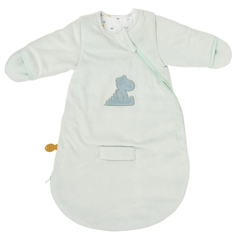 La gigoteuse à manches de Nattou dispose d’un grand zip à l’avant qui facilite l’habillage ou le déshabillage de votre petit, et d’un passage entre les jambes pour le harnais du siège-auto. La glissière s’ouvrant du bas vers le haut, il est possible de changer la couche de bébé sans le dévêtir totalement.