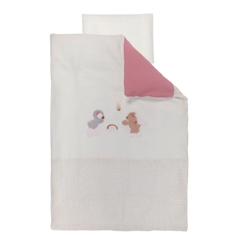 La housse de couette Sasha & Pauline apportera un vent de fraicheur et de douceur dans la chambre de votre petite princesse !