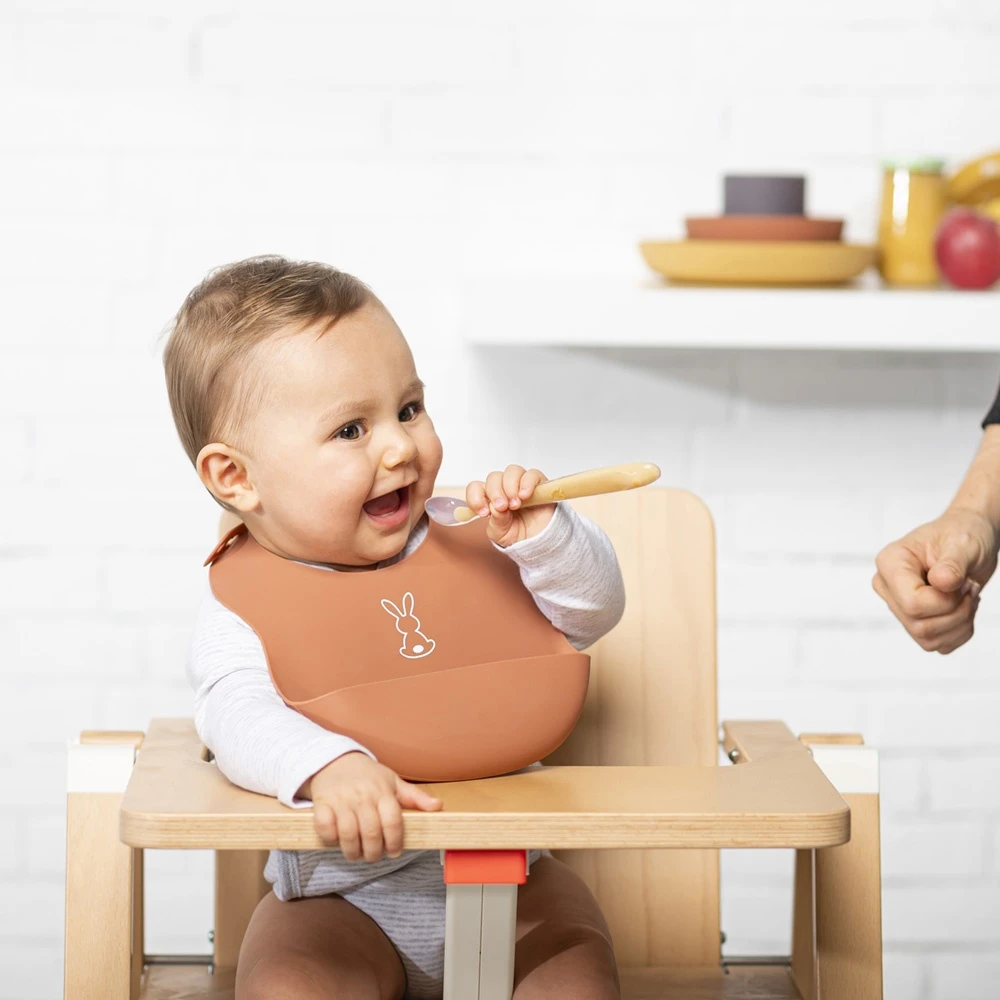 Optez pour ce Bavoir en silicone lapidou terracotta de chez Nattou. Très pratique grâce à sa matière en silicone, les aliments vont glisser jusqu’au récupérateur afin de ne pas tacher ni distraire votre enfant. Les repas seront plus agréables !