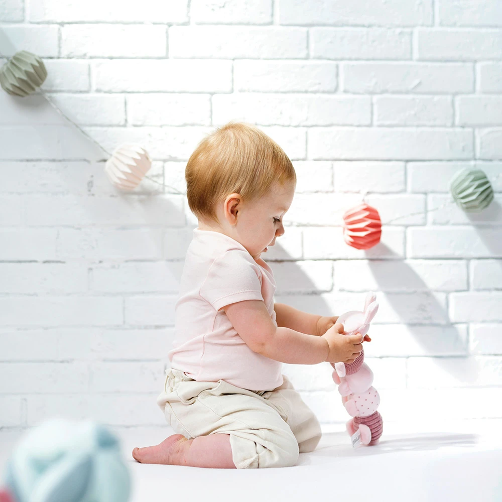 Peluche chenille aux différentes matières velours et tricot très douce et sons pour stimuler bébé