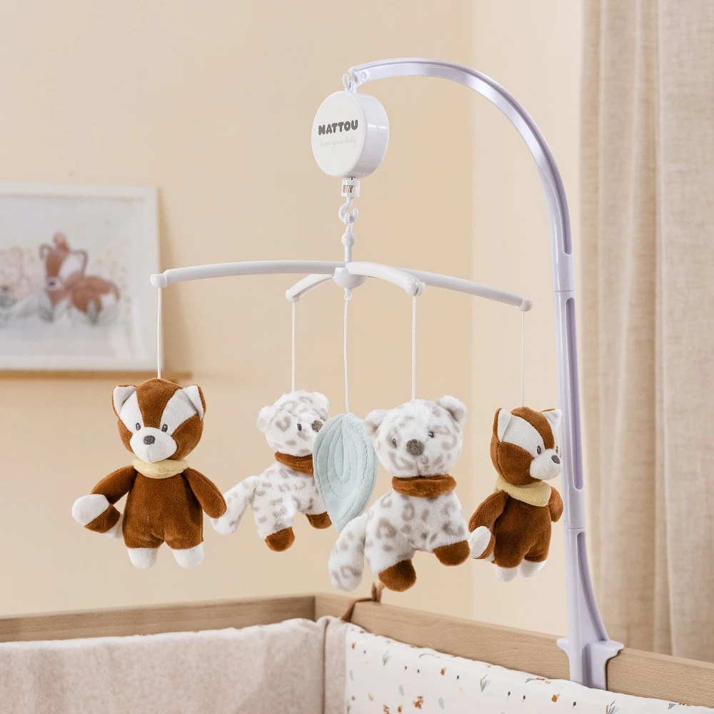 Le mobile est l’accessoire idéal à fixer au lit. Les petits personnages qui tournent au rythme de la chanson “La-Le-Lu” berceront bébé et l’endormiront. Les peluches peuvent être lavées en machine à 30 ° C.