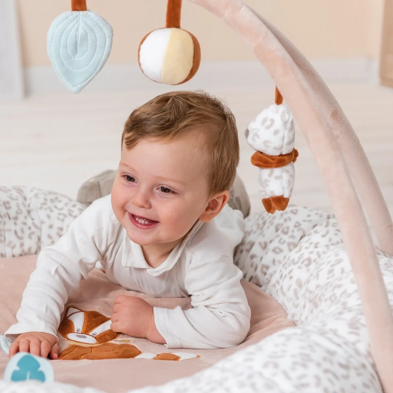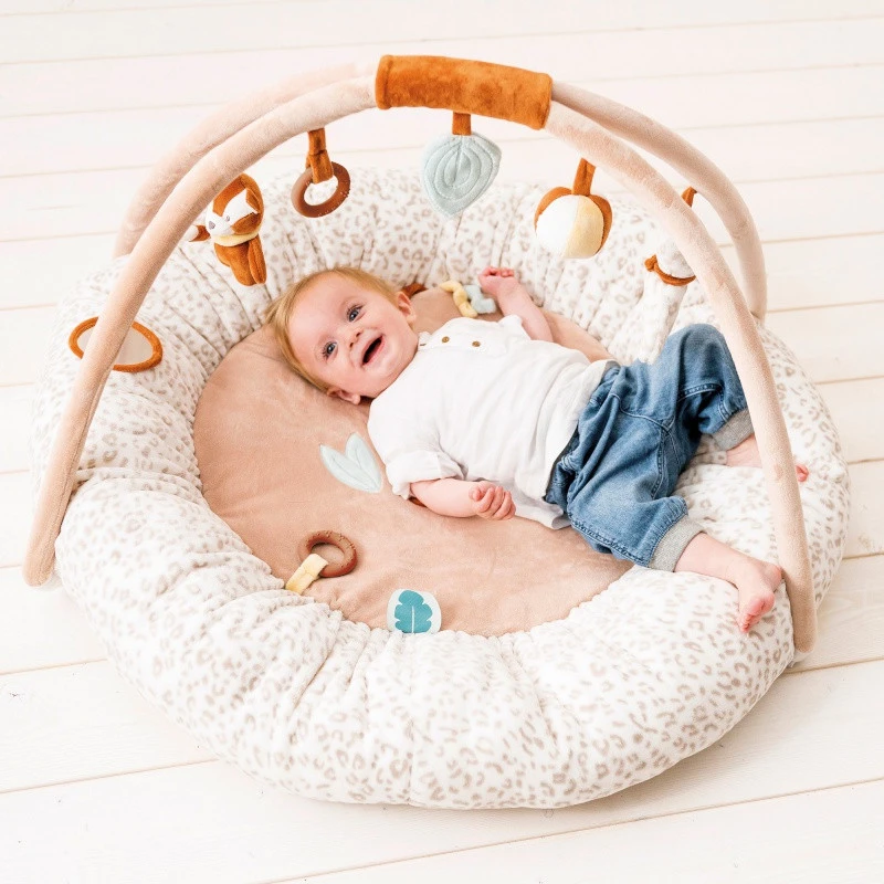 - Tapis d’éveil moelleux, livré avec son arche de jeux coordonnée, amovible.