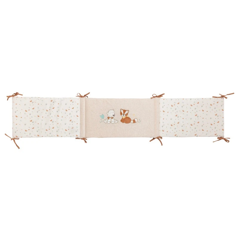 Le tour de lit de Nattou est réalisé en velours extrêmement doux, légèrement rembourré ; il associe un imprimé délicat de chaque côté et un uni beige au centre, où sont tranquillement installés les deux inséparables amis Boris et Jungo. Sachez également que le tour de lit est réversible si vous souhaitez changer de style.